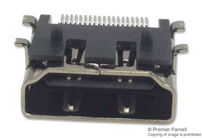 Header, Right Angle, Hdmi, Smt; No. Of Contacts:19Contacts; Gender:Jack; Connector Mounting:Pcb Mount; Contact Termination:Surface Mount Right Angle; Contact Plating:Gold Plated Contacts; Connector Body Material:-; Product Range:-; Svhc:No Svhc (27-Jun-2018); Contact Resistance:30Mohm; Current Rating:0.5A; Flammability Rating:Ul94v-0; Insulation Resistance:100Mohm; No. Of Mating Cycles:5000; Operating Temperature Max:85°C; Operating Temperature Min:-25°C; Voltage Rating Vac:40V; Withstand Voltage:500V