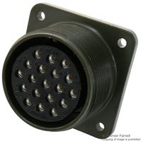 SOCKET, FLANGE, 19WAY; Military Specification:MIL-DTL-5015 Series; Circular Connector Shell Style:Box Mount Receptacle; No. of Contacts:19Contacts; Circular Contact Type:Solder Socket; Coupling Style:Threaded; Insert Arrangement:22-14; Connector Body Material:Aluminium Alloy Body; Connector Body Plating:Olive Drab Chromate over Cadmium; Contact Material:Brass, Copper Alloy; Contact Plating:Silver; Insert Rotation:N; Service Class:General Duty; Product Range:MIL-DTL-5015 Series